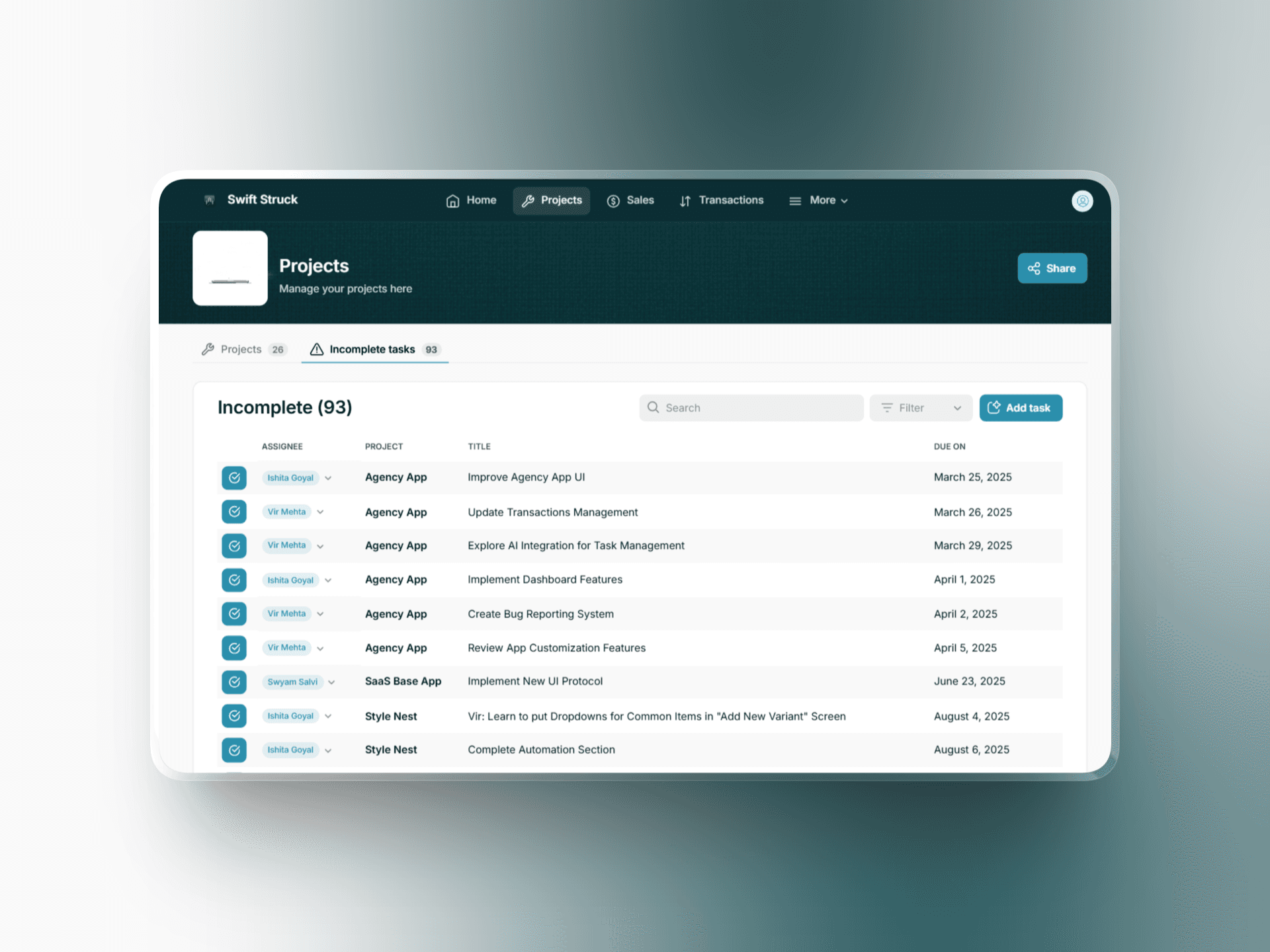 We created The Agency App to be the central nervous system for Swift Struck, handling everything from team check-ins to project management. The feature that has personally transformed our workflow is the AI-powered, speech-to-text task creation. We can now capture and assign a task just by speaking into our phones, letting the AI handle the rest while we stay focused on the bigger picture. This app isn't just a showcase; it's the tool we use every single day to stay fast, organized, and collaborative. It’s living proof of our core belief: great tools eliminate friction and unleash a team's true potential.