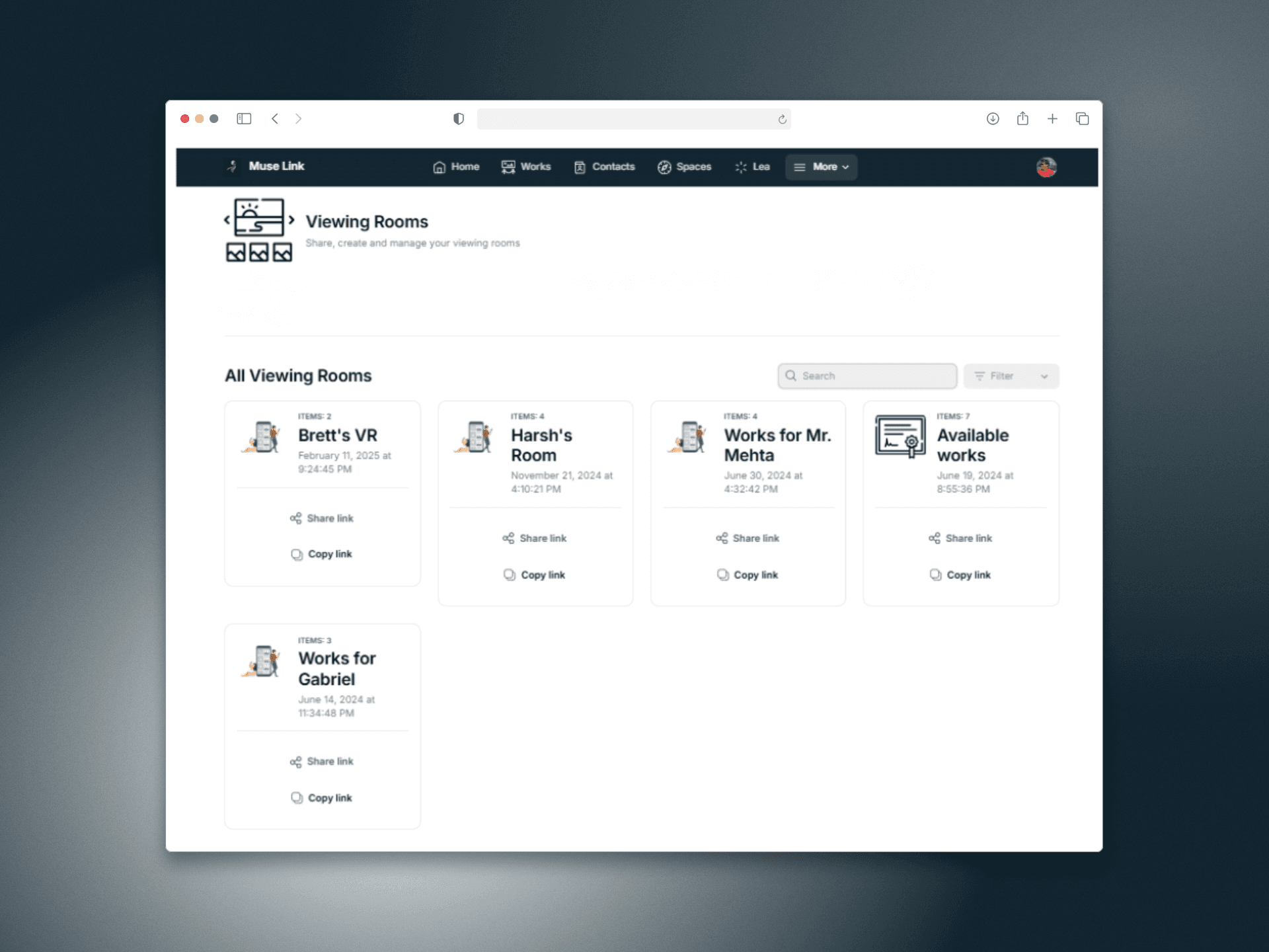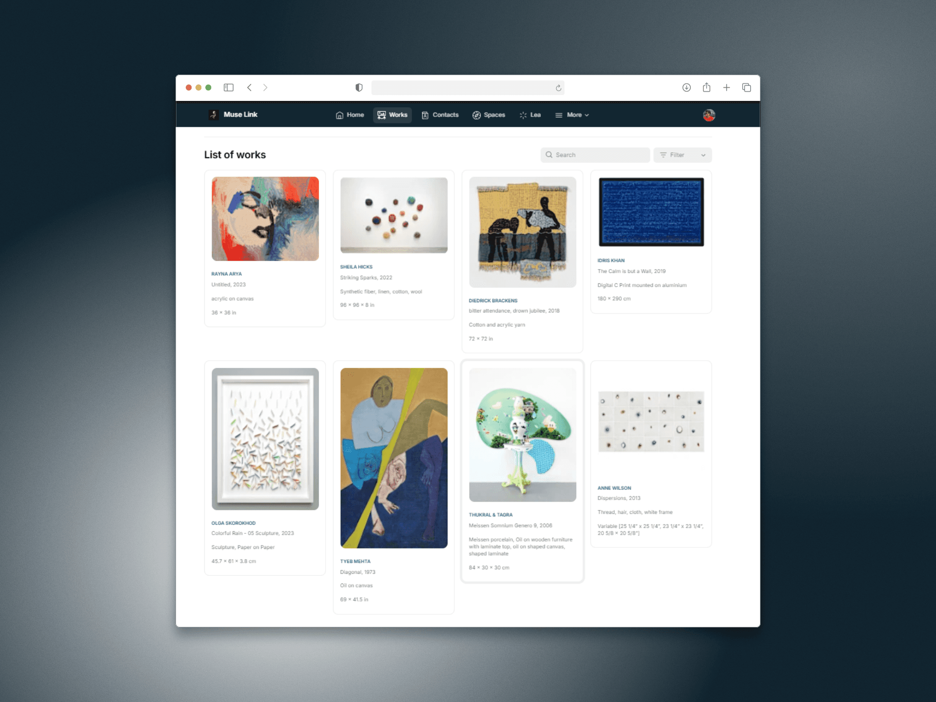 We saw a clear gap between clunky, manual methods and the overpriced, overly complex software designed for massive institutions. MuseLink was built to fill it. It’s an intuitive, powerful platform designed specifically for the modern artist and small-to-mid-sized gallery. We focused on the biggest time-sink: documentation. MuseLink makes inventory management effortless and allows you to generate professional PDFs and Certificates of Authenticity in seconds, not hours—freeing artists and gallerists to get back to the work that matters.
